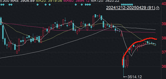 再回到A股,沪深300走出了一个标准的“圆弧顶”技术形态,通常被视为顶部翻转信号。
